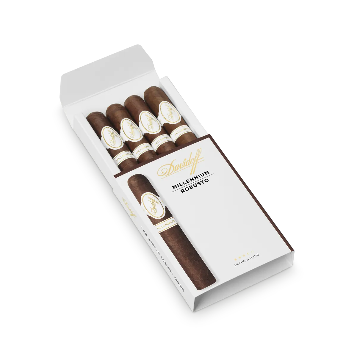 The Davidoff Millennium Blend Robusto Cigar is the quintessential expression of the Davidoff Millenium Blend line. With a higher percentage of Piloto tobacco, this punchy Robusto delivers a bold flavour profile.
