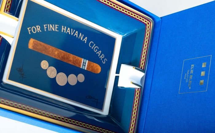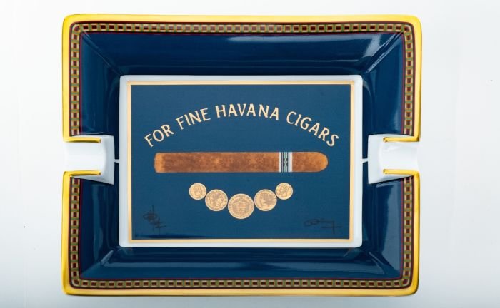 The porcelain ashtray Elie Bleu is made in one of the oldest and most famous manufactories in Limoges. The very high porcelain bag in combination with the colorful design make the ashtrays a bestseller. Porcelain ashtray “Medal”, Limoges.