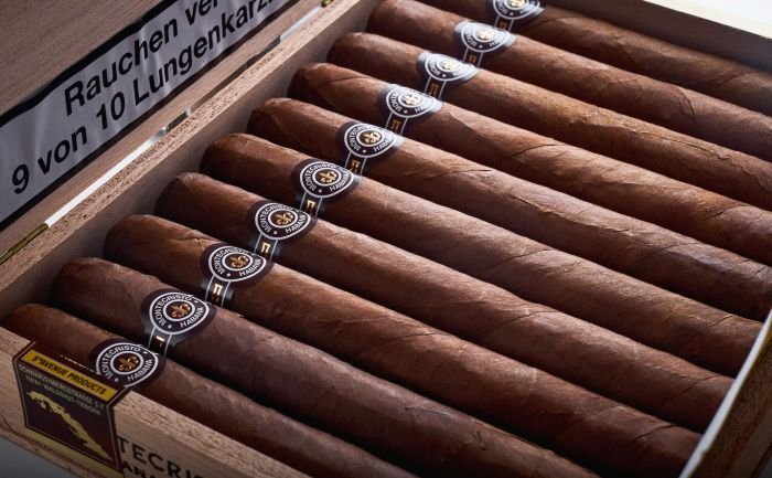 The Montecristo Double Edmundo is rich in colour and quality. The most prominent flavours of oak and leather are complemented by warming tones of cocoa.
