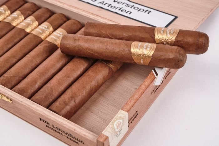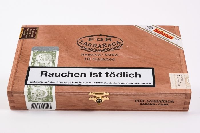 In the 19th century it was one of the most famous Habanos brands of its time and the epitome of luxury – Por Larrañaga. At that time, their cigars were among the finest and most expensive of all. They were found in the finest shops, restaurants and hotels on five continents and have received numerous awards. Some went so far as to claim that the Por Larrañaga brand made the Havana cigar famous in the first place. And the following quote about his favorite cigar has been passed down from the Nobel laureate for literature and author of the “Jungle Book”, Rudyard Kipling: “There is peace in a Larrañaga”. Founded in 1834, it is definitely the oldest Habanos brand that is still produced today. Unfortunately, the number of their formats has decreased significantly over time and so recently there were only two in the standard range, the slim Montecarlos and the Petit Coronas. The announcement of a new format for the brand was therefore somewhat surprising: the Por Larrañaga Galanes, which are now on the market. “Galanes” (in Spanish “the lover”) is also the name of the newly developed Vitola de Galera with a length of 120 mm and a ring gauge of 52. So we are dealing with a somewhat shortened, but thicker Robusto. This new format goes very well with the typical mixture of Por Larrañaga, which is characterized by creamy smoke, fine tobacco sweetness and notes of caramel with light to medium strength. The Por Larrañaga Galanes are packed in unglued, single-layer natural wooden boxes with 10 pieces.