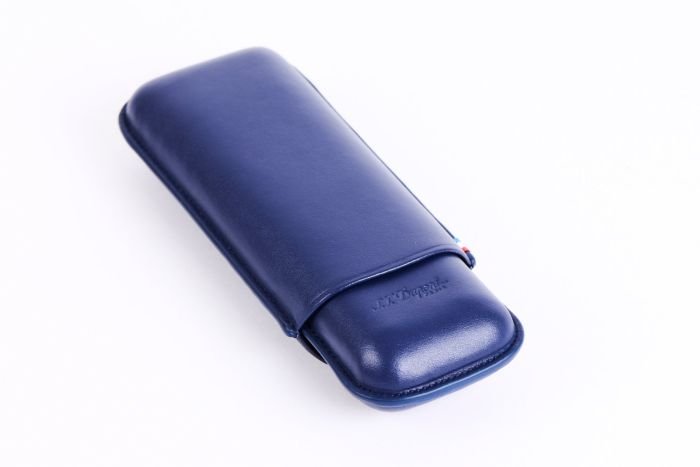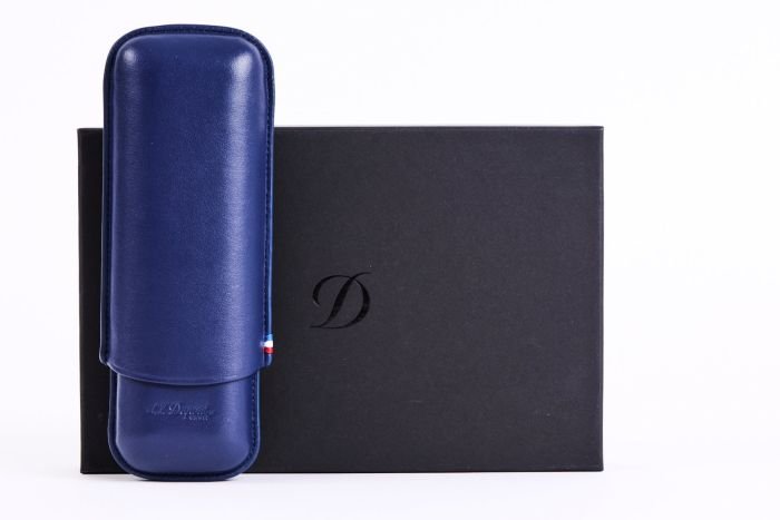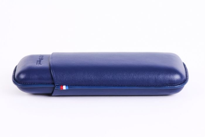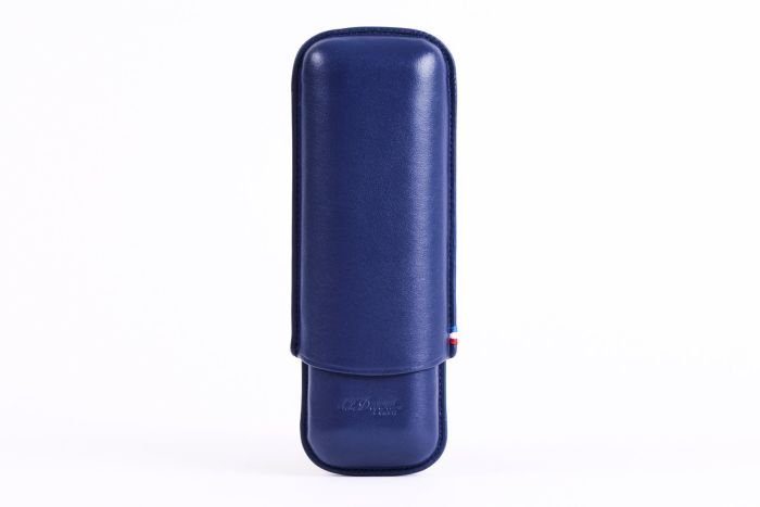 Smooth blue cowhide leather double cigar case with S.T. Dupont engraving and distinctive stitching in blue, white and red. Dimensions: 18x6x3cm Weight: 0.130kg.