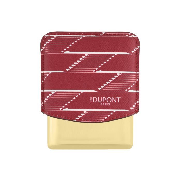 From metalworking to lacquering and coated leather goods, the craftsmanship of S.T. Dupont is evident in the Monogram 1872 collection. Well-rooted in their time, the pieces in the collection all bear the new S.T. Dupont logo, upright, determined, and proud. Cigarillo/cigarillo case made of coated canvas, decorated with a burgundy Monogram 1872 and a gold-plated metal base for up to 8 cigarettes.